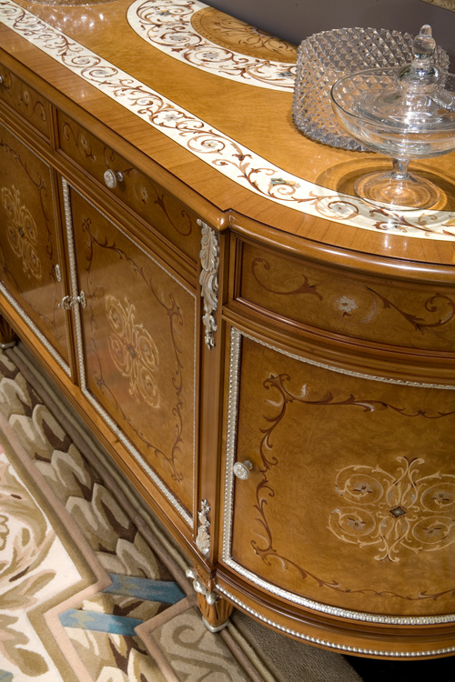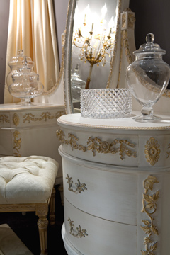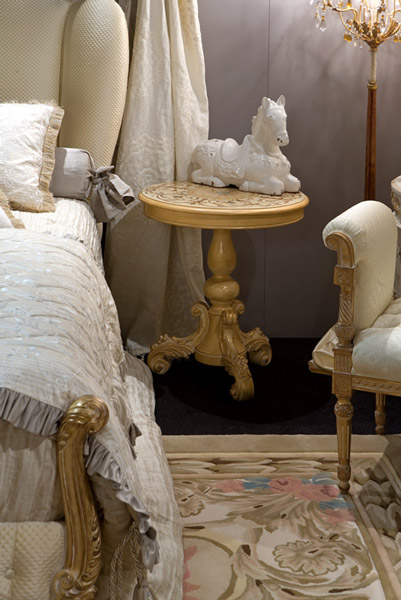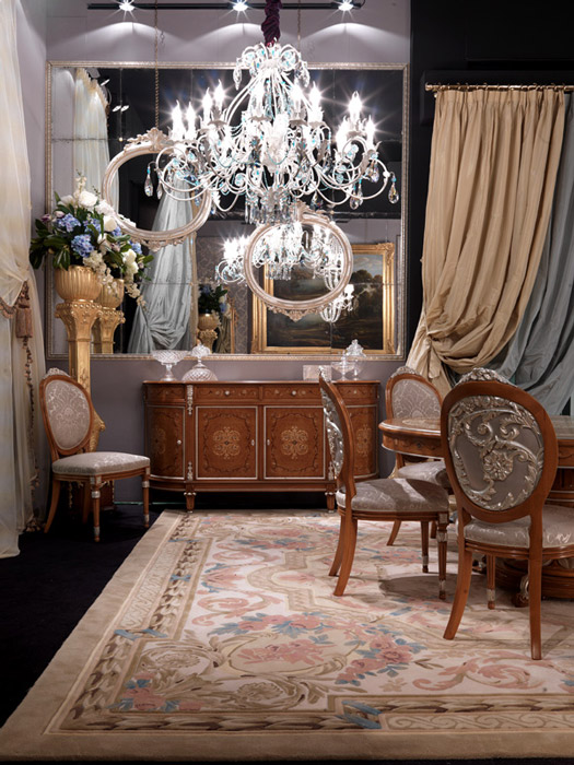 Fragonard is the name of the new Arte Arredo Schleret catalogue, many and precious collections are embraced inside: XVIII century, baroque, splendor, extreme refinement, virtuosity, silks and velvets, great prestige, are the key-words of the new catalogue. The collection Chantilly and New Allure are characterized by precious woods inlay and nacre from Australia and New Zealand. Rich of details and in perfect alchemy between skill and quality, those two collections are designed to be a benchmark. Fragonard implies a refined line of carpets designed by Arte Arredo Schleret, that also mind to transfer its design heritage from projecting to realization. By the necessity to develop complete ambiance and by a stronger collaboration with Barj-Buzzoni, there will be a dedicated section in honor to the french painter Jean-Honoré Fragonard.